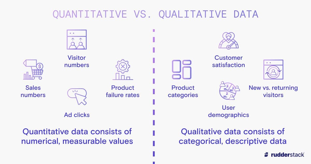 This article explained what quantitative and qualitative data are, how they are different, and how they can be applied in a data-driven business. To find out more about the data your business can acquire, and how it can be used to enable growth, check out our related RudderStack Learning Center articles: