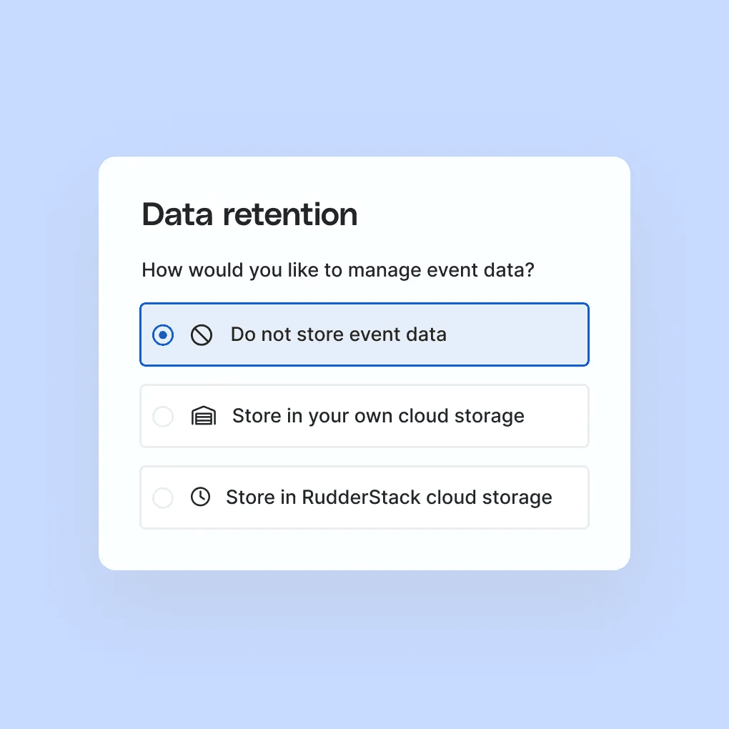 RudderStack is built with security and compliance front-and-center. That’s why we do not store your data and offer industry-leading security and compliance features.